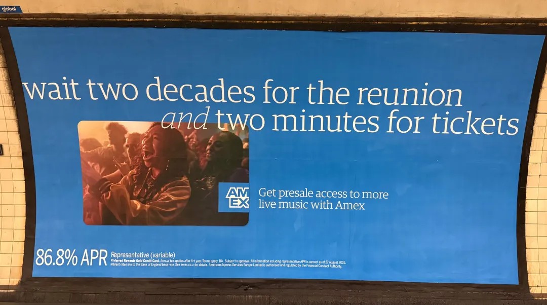 利用瑞典ABBA乐队演唱会,来推销运通卡的预售抢票功能。“乐队重聚花费20年,票被抢光只花了2分钟”。有了运通卡,就可以在票开售前提前抢票。