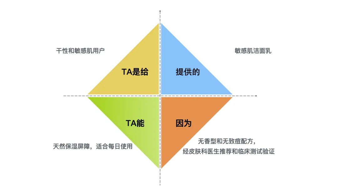 这段描述文案简直就是AI问答照搬,问题也许就是“敏感肌洁面用什么品牌好?”。而答案呢?就是“产品概念”的标准撰写方式:1、给哪些消费者:干性和敏感肌用户。2、有什么好处:天然保湿屏障,适合每日使用。3、为什么相信:无香型和无致痘配方,经皮肤科医生推荐和临床测试验证。4、是什么类别:敏感肌洁面乳。