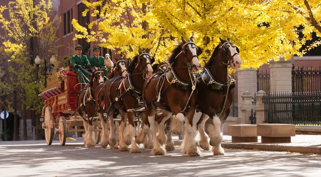 1933年,6匹Clydesdale克莱德重型挽马拉着马车,庆祝美国禁酒令的废除。之后的近百年,Clydesdales马陪伴百威共成长。这种陪伴不是在字面上,而是真实的存在。因为,百威母公司Anheuser-Busher有专门的马场,养育了世界上最大Clydesdale马群。