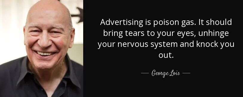 广告传奇人物 George Lois乔治·洛伊斯,认为广告就是毒气,让你流泪,让你窒息,让你难受。